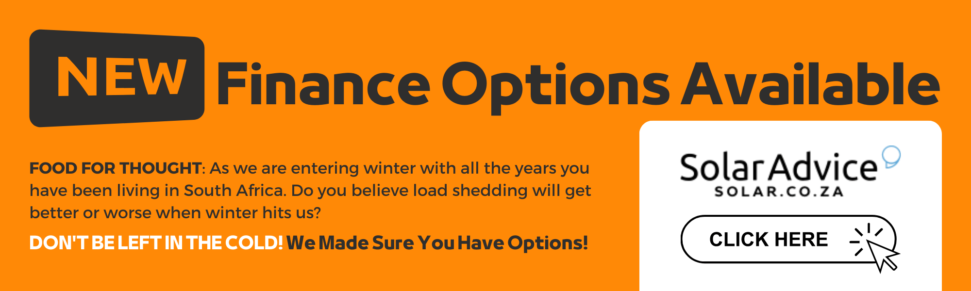 - Solar power will ensure you have power whenever you load shed.